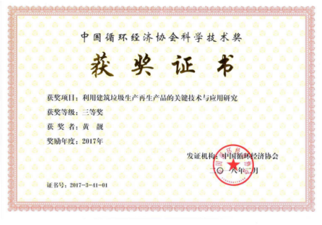 近日,在中国循环经济协会的“2018年全国循环经济科技创新大会”上,公司黄靓教授负责完成的《利用建筑垃圾再生产品的关键技术与应用研究》获得了中国循环经济协会科学技术奖三等奖(排名第一),为公司的科研成果增加了一大亮点。黄靓教授也被聘为中国城市环境卫生协会建筑垃圾管理和资源化工作委员会专家委员会委员。