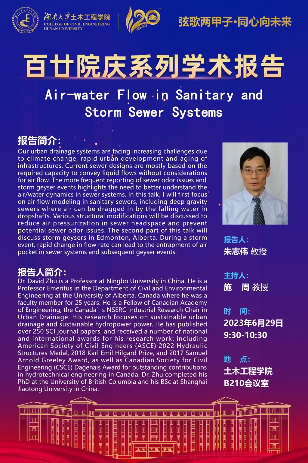 百廿院庆 学术报告|朱志伟:Air-water Flow in Sanitary and Storm Sewer Systems