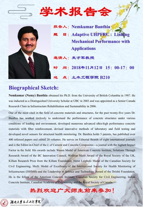 Nemkumar Banthia:适应性超高性能纤维增强混凝土:力学性能与应用
