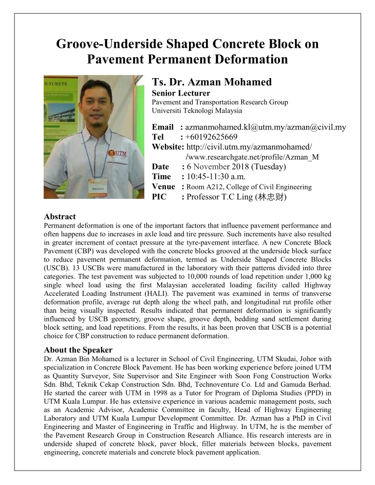 Dr. Azman Mohamed:槽底型混凝土砌块在路面上的永久变形研究