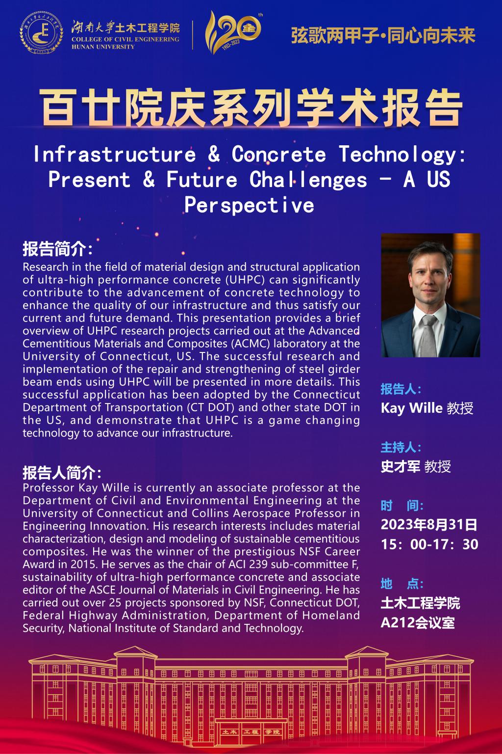 百廿院庆 学术活动|Kay Wille:Infrastructure & Concrete Technology: Present & Future Challenges - A US Perspective