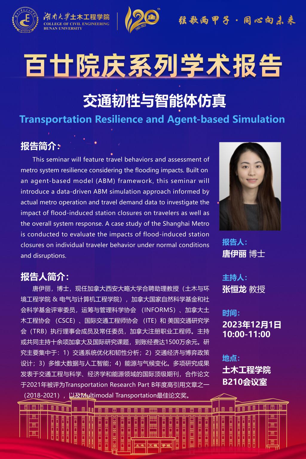 百廿院庆 学术活动|唐伊丽:交通韧性与智能体仿真