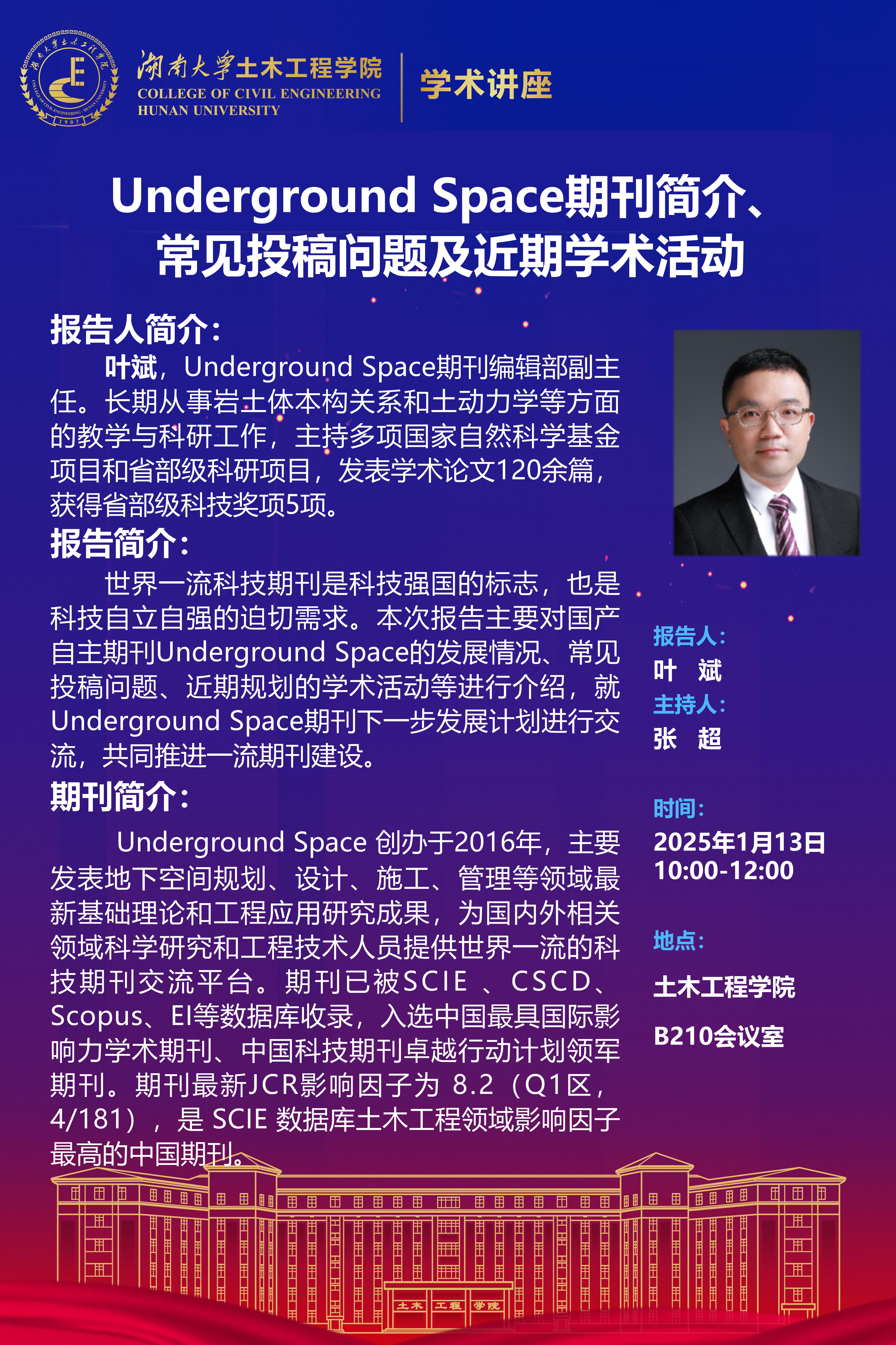 叶斌:Underground Space期刊简介、常见投稿问题及近期学术活动
