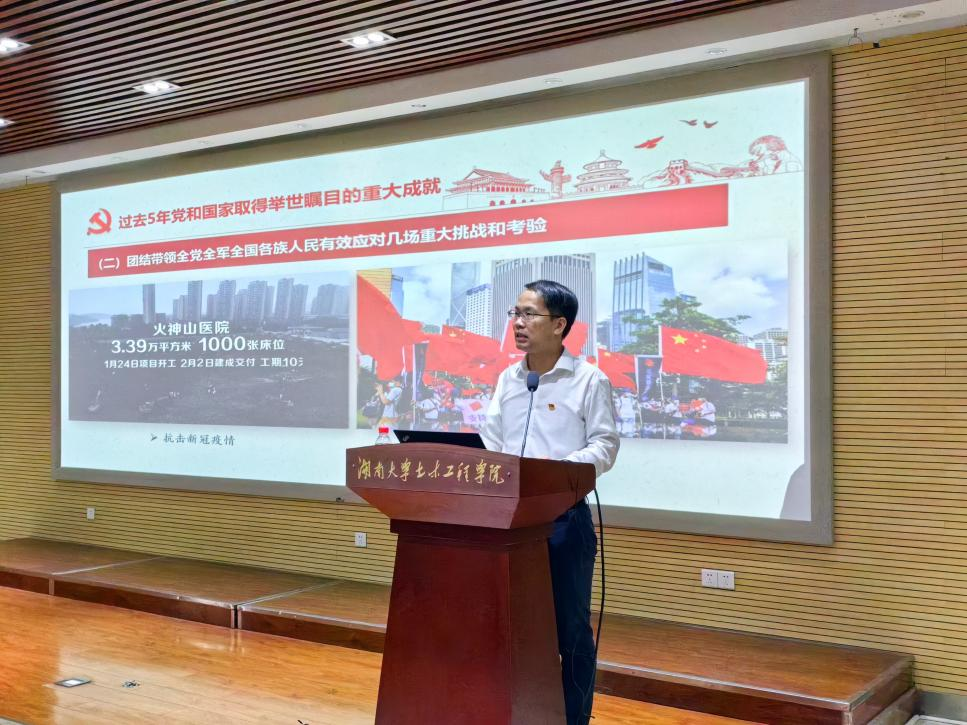 彭晋卿以《学习贯彻党的二十大精神,让青春在全面建设社会主义现代化国家的火热实践中绽放绚丽之花》为题,回顾了过去五年党和国家取得的重大成就,讲述了我党是如何带领全党全军全国各族人民有效应对一系列重大挑战和考验,一步步推进党和国家的事业发展,并在新时代十年取得历史性胜利的光辉历程。