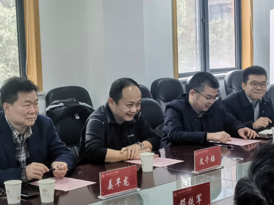 3月1日,qy球友会资产经营公司党委书记、董事长文千锤、总经理张浩、湖南湖大建设监理有限公司董事长姜早龙、总经理金波一行到公司交流,公司经理邓露、副经理周云、张超和工程管理专业部分老师参加了座谈会。