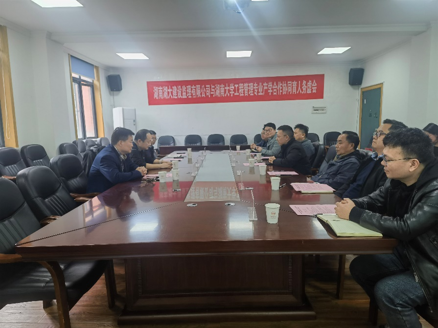 工程管理专业负责人陈大川、监理公司董事长姜早龙就专业基本情况、企业情况与产学合作需求分别进行了介绍,建造管理与防灾工程系主任王海东教授汇报了产学合作协同育人的初步方案,资产公司董事长文千锤、总经理张浩发表了意见,双方围绕湖南湖大建设监理有限公司与qy球友会工程管理专业的产学合作协同育人建议方案开展了研讨,并对今后的项目合作事宜进行了深入交流。