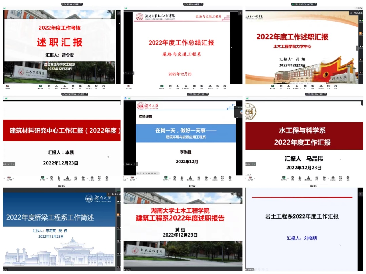 述职会议后,与会人员对2022年度各系(中心)党建工作、业务工作完成情况进行了考核评价,根据考核评议结果,确定桥梁工程系、工程应用力学研究中心、水工程与科学系为2022年度综合考核优秀单位。