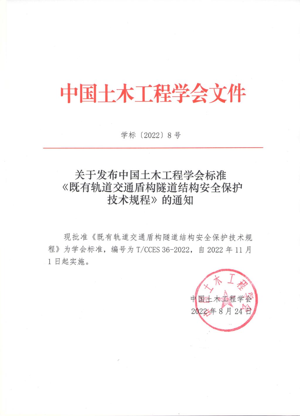 由球友会陈仁朋教授、深圳大学土木与交通工程公司陈湘生院士牵头,qy球友会和深圳大学作为主编单位,会同同济大学、广州地铁设计研究院股份有限公司、铁科院(深圳)研究设计院有限公司、中铁二院华东勘察设计有限责任公司、浙江大学、中国建筑第五工程局有限公司、武汉市市政建设集团隧道工程公司、长沙市轨道交通集团有限公司、中国电建集团华东勘测设计研究院、深圳市地铁集团有限公司、中电建铁路建设投资集团有限公司、中铁第四勘察设计院集团有限公司、上海市隧道工程轨道交通设计研究院以及深圳市市政设计研究院有限公司编制的中国土木工程学会标准《既有轨道交通盾构隧道结构安全保护技术规程》(T/CCES36-2022)(以下简称《规程》)正式颁布,并于2022年11月1日实施。