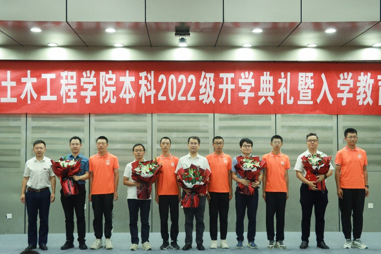 公司党委副书记周石庆宣读聘任决定后,由院领导向周云等13位2022级本科生新生班主任颁发聘书,班级代表为班主任献花并合影留念。