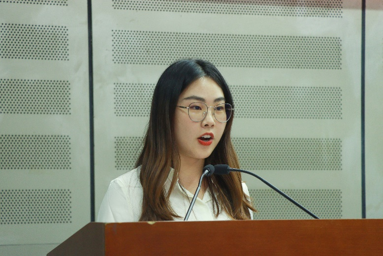 2019级老生代表诸子青分享在学习和工作中的经历,并总结了三点建议,勉励新生们能在这四年的时间中不负青春,不负韶华。2022级新生代表刘曼彤表达了对老员工活的憧憬,并在发言中表示将牢记伟大先辈,不负使命,用青年人的朝气与创新,将前路开拓地更为宽广。