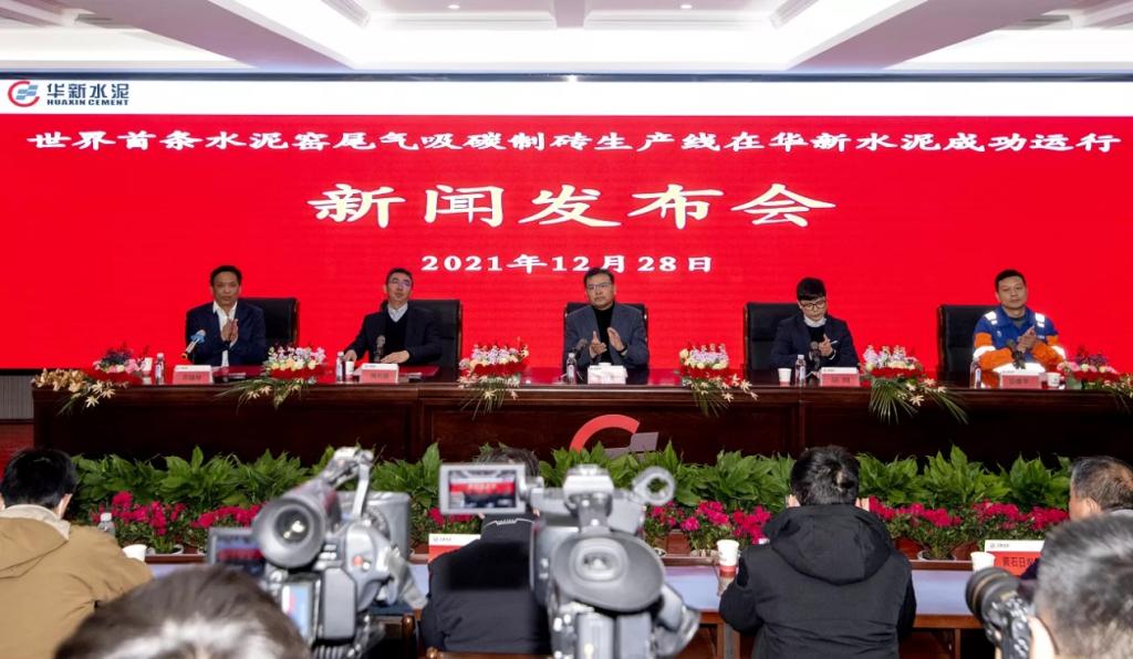 12月28日,华新水泥股份有限公司和qy球友会在华新武穴工业园基地联合举办了“世界首条水泥窑尾气吸碳制砖生产线在华新水泥成功运行”的新闻发布会。据了解,这是世界首条利用CO2生产混凝土制品的生产线。