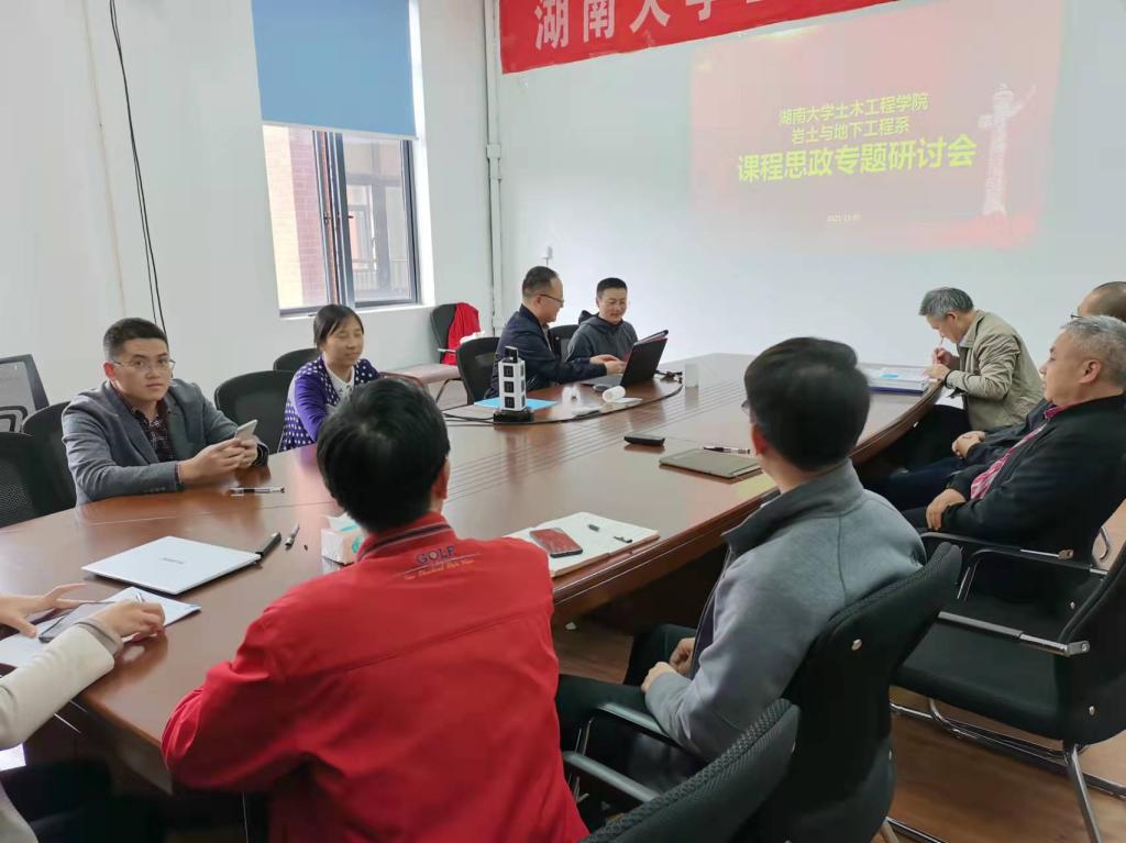 11月2日,岩土与地下工程系召开课程思政专题研讨会,系全体教师参加会议,系主任刘晓明领学教育部《高等公司课程思政建设指导纲要》、《qy球友会课程思政优秀教学案例库》等相关文件,与会人员围绕“一线教师专业课融入课程思政要点及案例”进行了专题研讨,副经理彭晋卿参加会议。