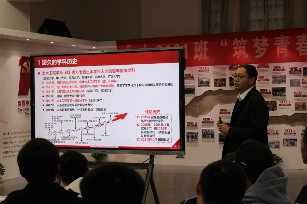 本次班会共分为三个部分。第一部分为“畅想青春--树立远大理想”。班会首先以视频的形式介绍班级概况,随后张望喜老师对土木工程专业进行介绍,并解答了部分同学关于专业方面的疑问,让同学们对土木工程专业有了更全面的了解,为同学们的筑梦青春之路增添一抹亮色。