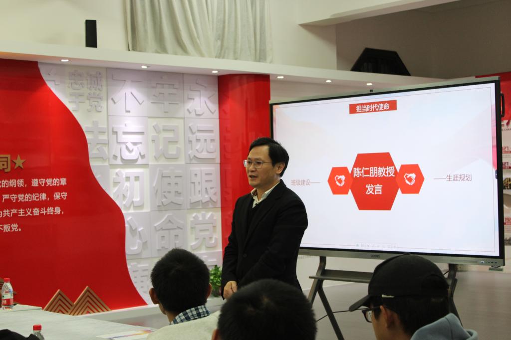 第二部分为“畅谈青春--担当时代使命”。邀请班级员工助理分享优秀班级建设经验,并通过视频方式展现高年级同学在班级建设方面的优良传统,之后全班同学在班委的引导下从班风、寝风、个人发展三个方面共同探讨班级建设思路。陈仁朋老师对班级建设、生涯规划进行指导,他指出土木工程专业绝不会走向没落,要坚持所选择的道路,不断提升自己,为社会为国家贡献自己的一份力量。陈仁朋老师的讲话为同学们的筑梦青春之路指明方向,使同学们大有拨云见日之感。