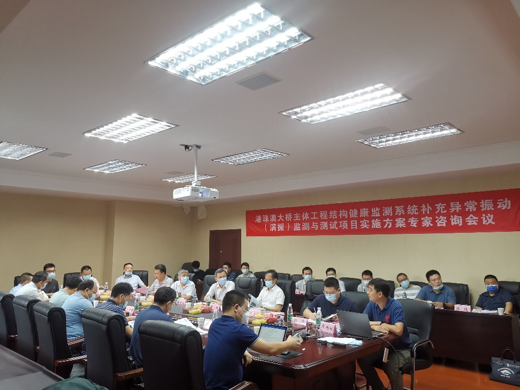 7月30日,“港珠澳大桥主体工程结构健康监测系统补充异常振动(涡振)监测与测试项目”实施方案专家咨询会在qy球友会风中心会议室举行。会议首先由港珠澳大桥管理局苏权科总工主持。苏权科总工介绍了与会领导、专家和项目实施单位代表,会议组成了以广州大学周福霖院士为组长的专家组,其他与会人员包括港珠澳大桥管理局郑顺潮局长、苏权科总工、李江部长、高文博副主任等,以及项目承担单位qy球友会陈政清院士、华旭刚教授等,长安大学梁鹏教授,中交公路规划设计院有限公司张革军副总工等。