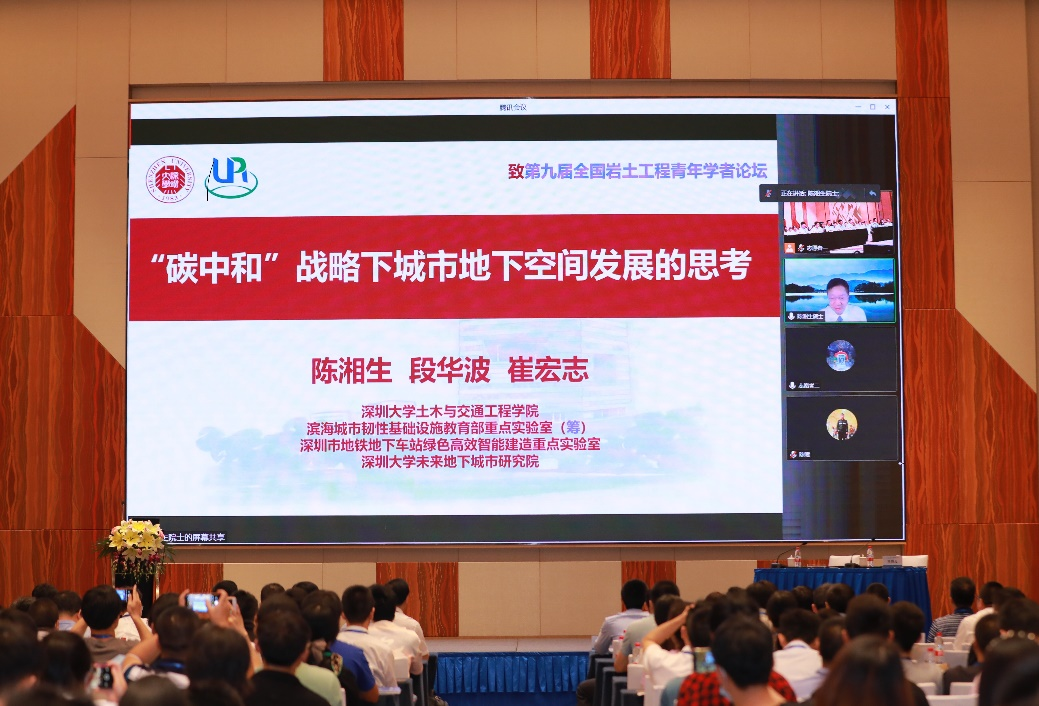 本次论坛的主题为“地下空间开发中的岩土力学问题”,邀请了中国工程院院士、深圳大学陈湘生教授做《“碳中和”战略下城市地下空间发展的思考》的院士报告。陈湘生院士表示,把碳达峰、碳中和纳入生态文明建设整体布局党中央作出的重要决策,也是我国实现高质量发展和民族复兴的必由之路。城市地下空间开发利用可为我国“2030碳达峰、2060碳中和”的目标提供强大助力。他强调,需要从新规划、新设计、新材料、新技术、新工法等多角度,进行地下空间开发利用和低碳化升级,以达到减碳效益的最大化。
