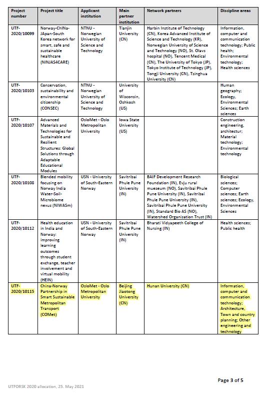 UTFORSK项目是由挪威教育研究部(Norwegian Ministry of Education and Research)资助,挪威高等教育国际合作与质量提升署(Diku)管理,旨在支持挪威与中国、日本、美国等国高等教育机构在可持续未来领域建立长期的合作关系(https://diku.no/en/programmes/utforsk)。在2020年度获该项资助的35个项目中,有7个项目涉及中国科研院校与企业。其中,北京交通大学-qy球友会联合体是唯一在交通运输领域获得资助的院校。