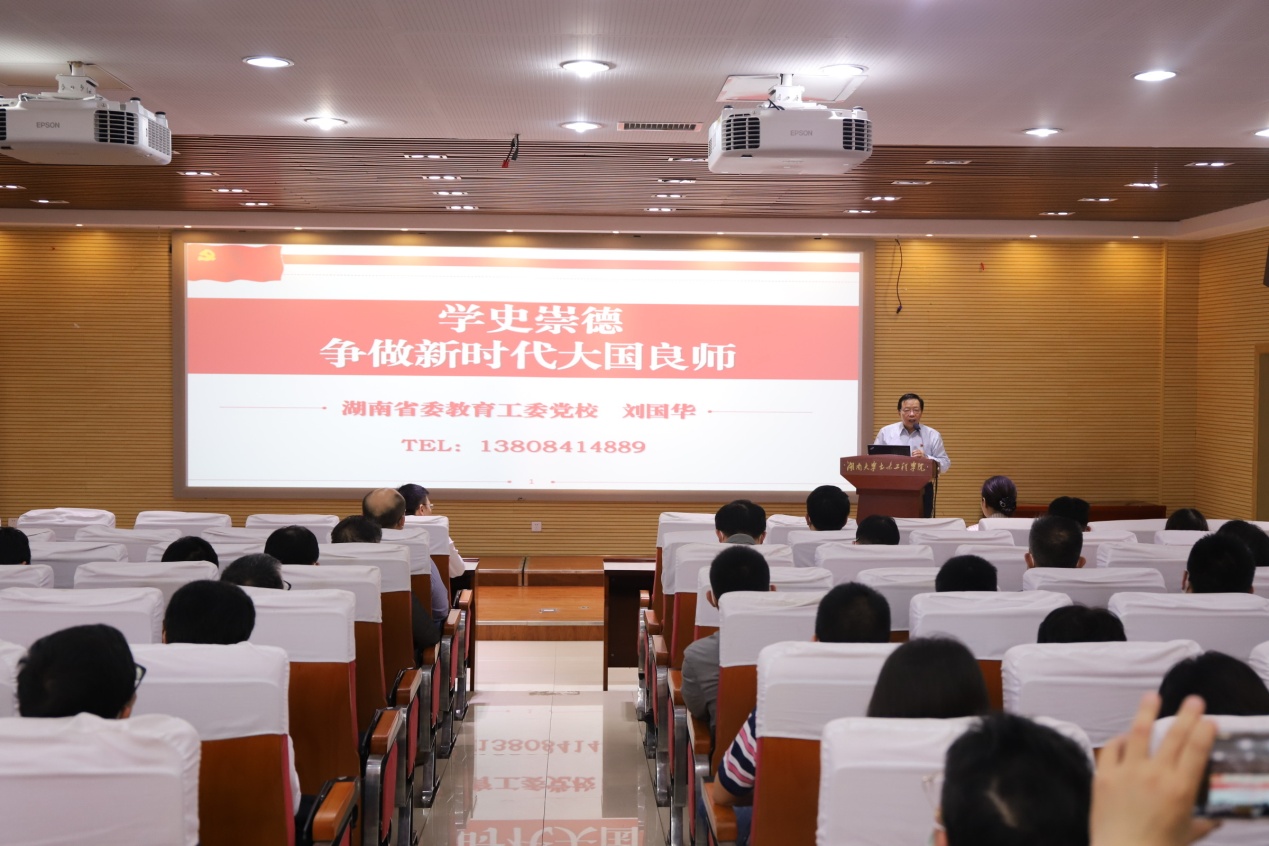 5月25日下午,球友会开展“学史崇德”教职工政治学习活动,邀请省委教育工委党校常务副董事长刘国华教授做《学史崇德,争做新时代大国良师》专题报告。报告会由党委书记彭嘉芬主持,全体教职工参加。