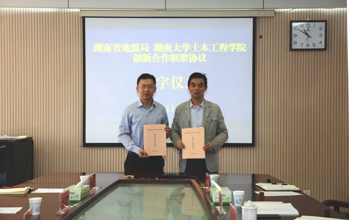2020年11月18日上午,公司与湖南省地震局创新合作框架协议签署仪式在湖南省地震局举行。省地震局党组书记、局长燕为民主持仪式并致辞,经理邓露出席仪式并讲话。省地震局党组成员、局长助理王春华、土木公司副经理彭晋卿等出席活动。