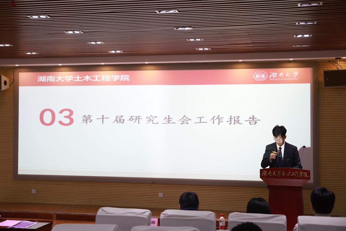 第十届研究生会主席姚志鹏作本次研代会工作报告,各与会代表听取、审议《球友会第十届研究生会工作报告》。