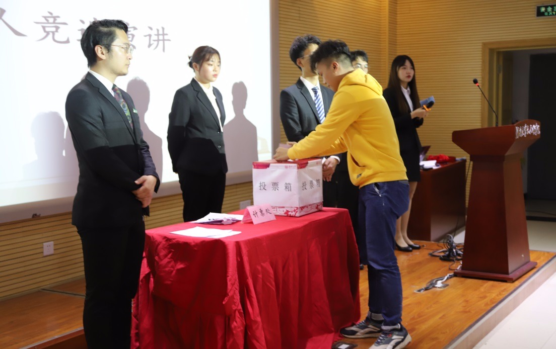 第十一届研究生会执行委员会9位候选人依次登台进行竞选演讲,与会代表投票选举出球友会第十一届研究生会执行委员会。