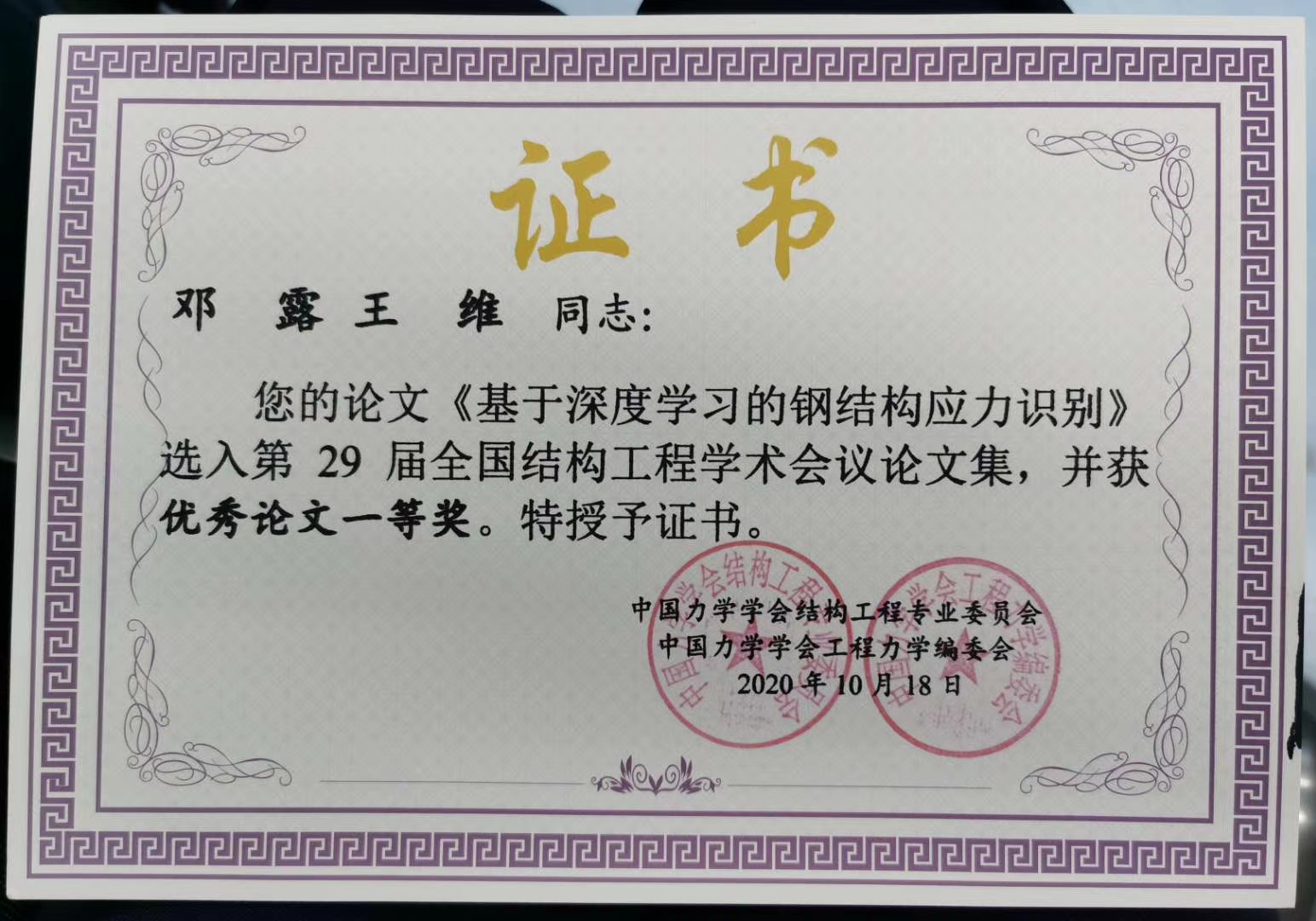 第29届全国结构工程学术会议于10月16日至18日在武汉理工大学召开。本次会议采用线上线下相结合的方式,公司邓露、李正农、周云、孔烜教授、曹然副教授等人线下参加会议。在会议论文评选中,公司邓露教授、王维助理教授合著的论文《基于深度学习的钢结构应力识别》荣获优秀论文一等奖。