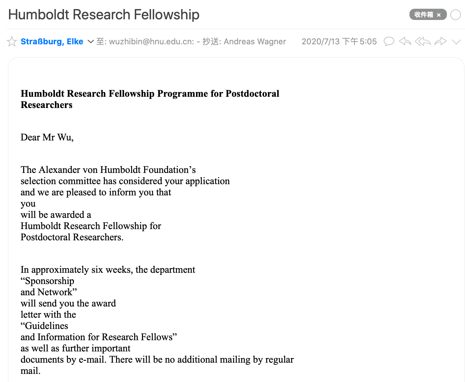 伍志斌博士荣获洪堡学者说明其研究工作得到了国际同行的高度认可,展现了公司的科研实力,尤其是建筑环境领域的研究达到了国际先进水平,也为公司赢得了学术声誉,并对提高公司在该研究领域的影响力作出了贡献。