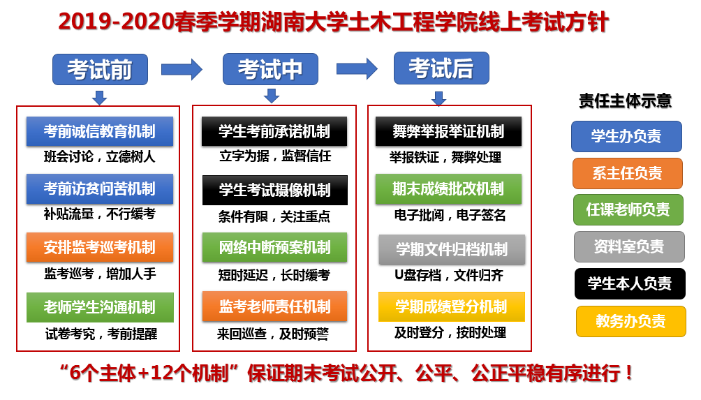 按照公司统一部署,基于线上考试“6个主体+12个机制”的保障体系,各级相关部门和责任教师联动,层层压实责任,力保期末线上考试平稳有序进行。针对不同课程的特点,真正做到“一课一策”。