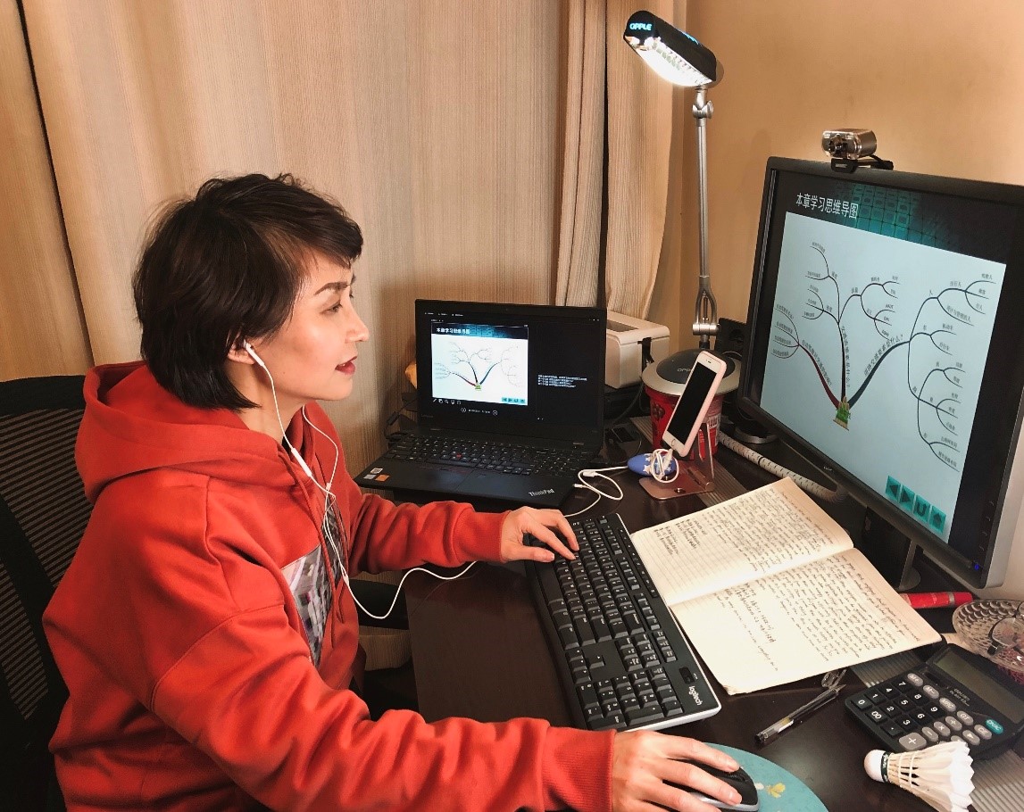 受到疫情影响,采用网络教学是“不得已而为之”,但经过一个多月的线上教学实践,李老师和同学们逐渐适应和习惯了这一新的教学方式。通过网络云端,沟通学习,交流心灵,她们所坚持的是 “只争朝夕,不负韶华”的初心!