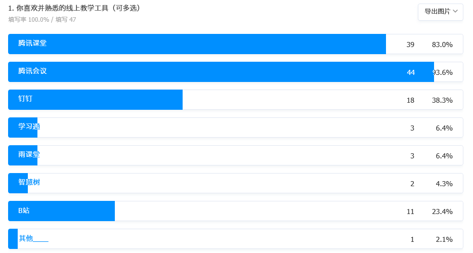 李老师采用BOPPPS模式对教学内容进行了精心设计。每个BOPPPS教学设计包含:导言、目标、前测、参与式学习 、后测和总结。其中,导言、目标和总结环节与课堂教学差别不大。前测部分为了节省时间多是采用腾讯课堂的“答题卡”,而后测部分多是采用腾讯问卷来及时测试和回收试卷。充分利用线上的先进手段,从而达到更好的教学效果检查和反馈。