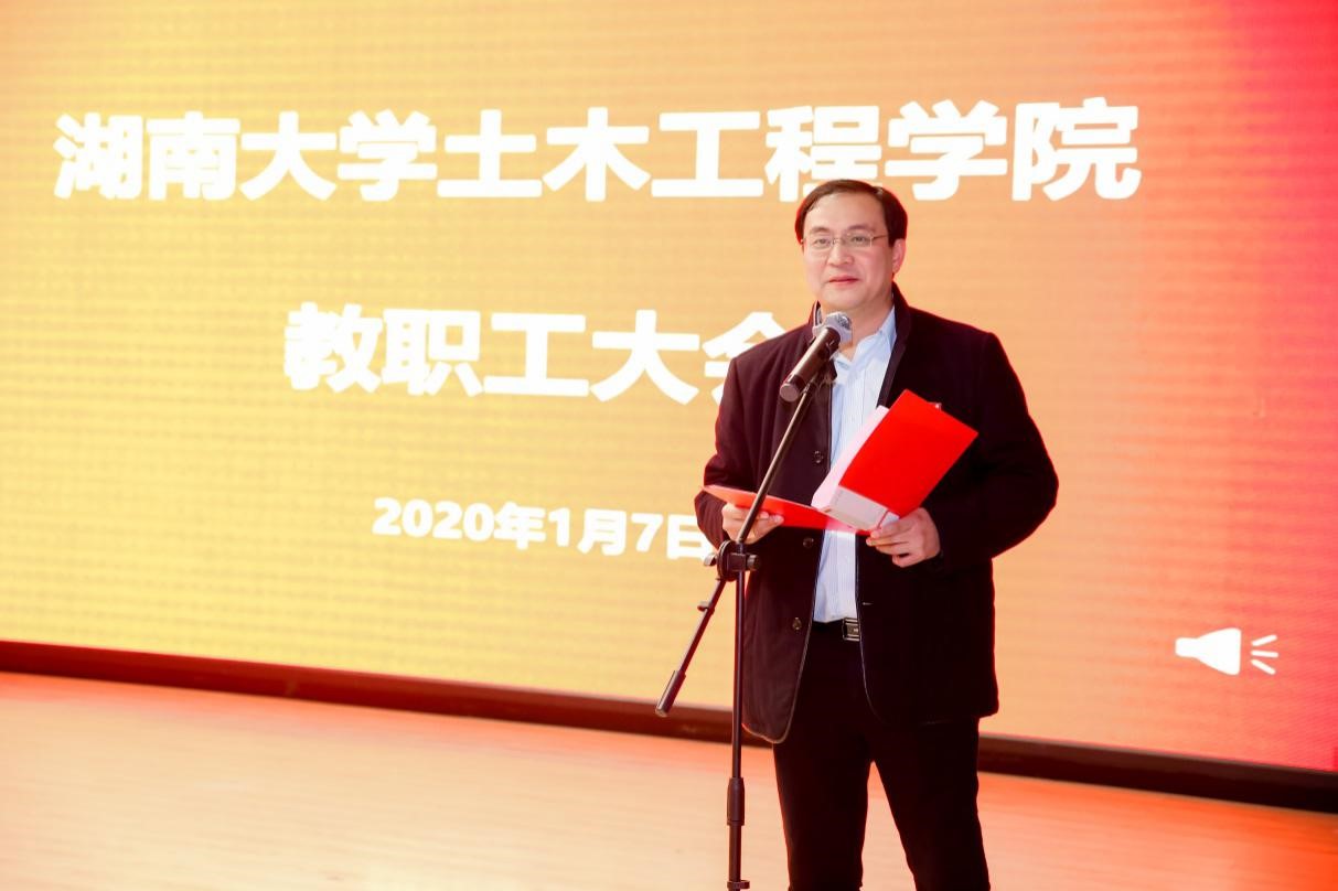 在教职工大会上,施周经理首先回顾了土木院2019年在团队建设、人才培养、科学研究、社会服务等方面所取得的成就。并寄语公司教职工在2020年只争朝夕,不负韶华,为公司的建设发展做出新的贡献!最后为全体教职工送上美好的祝福。