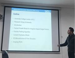 张明中教授从微观角度展开了水泥颗粒在水泥颗粒堆积及水泥微观结构的研究。此外,张明中教授还向我们阐述了采用不规则水泥颗粒对不同形状水泥的水化过程进行研究,从表面积、粒径分布和几何结构等方面精确地再现了真实的水泥颗粒,可观测水泥颗粒几何形状对水化过程和水化程度的影响。问答环节,老师和同学们纷纷就自己感兴趣的方面提出问题,张明中教授耐心一一做出了解答。报告会后,双方就进一步进行合作研究和培养研究生进行了深入的交流,共同为人才培养和促进建筑材料科学和技术的发展做出贡献。
