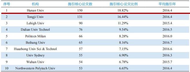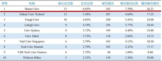 表1 “土木工程结构与系统全寿命可靠性”工程研究前沿中核心论文的主要产出机构