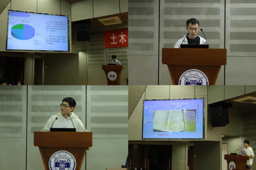在会议上,员工干部进行了学习成绩分析,指出了各班级存在的有关问题,提出了具体解决措施。建环2201班学习委员高雨桐、土木2202班学习委员张伟聪分享了班级学风建设经验和个人学习心得。