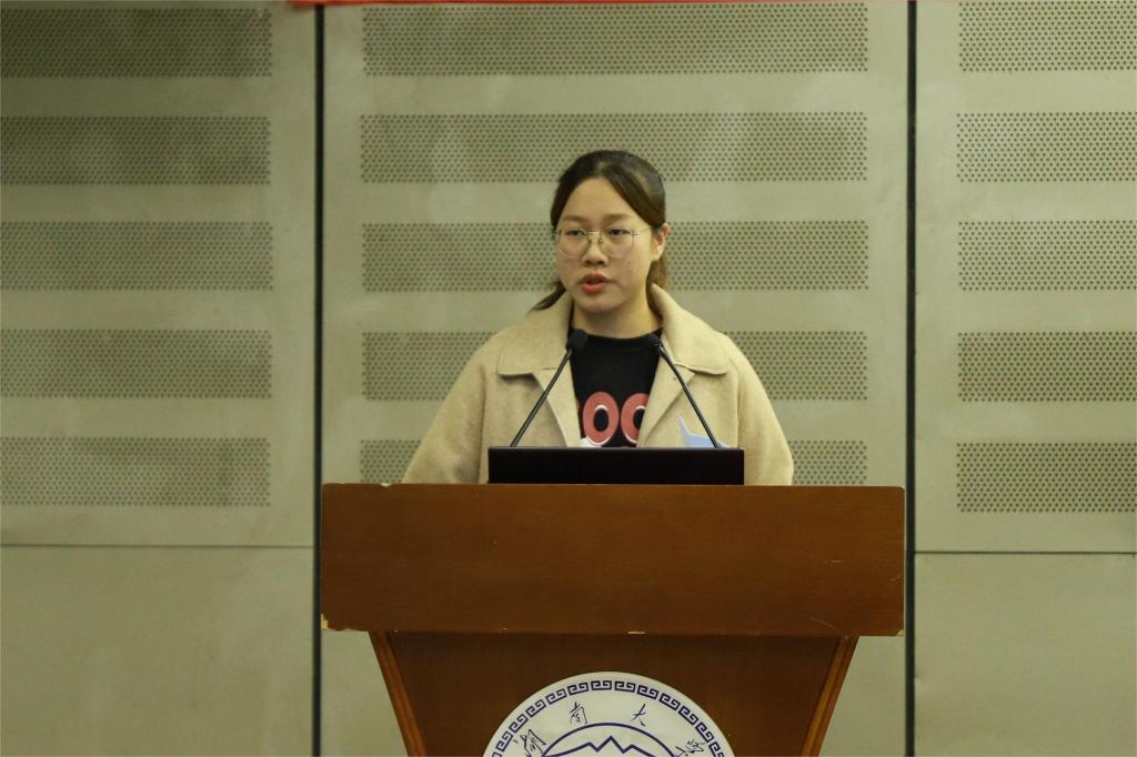 校优秀员工标兵、建环2103班陈鹤一以“向下扎根,向上生长”为题分享了学习、工作中的心得经验,并强调了提升自身能力、实现全面发展的重要性。