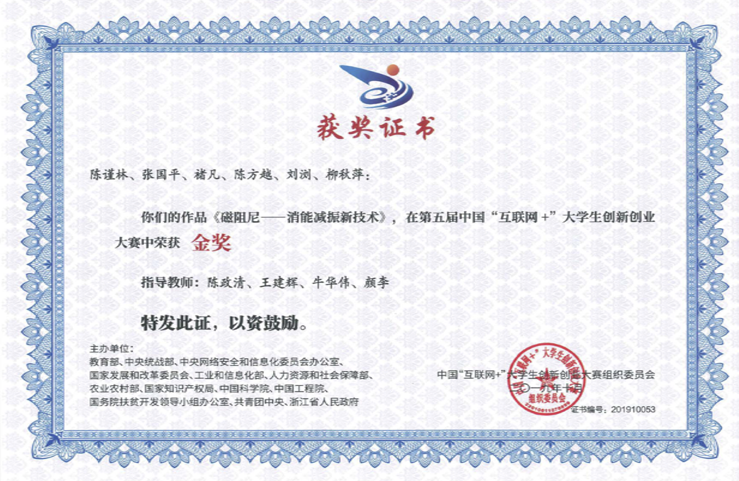第五届“互联网+”大赛主赛道金奖磁阻尼-消能减振新技术。