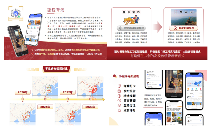 立“数字平台、社会实践”之柱,架“实践教学数字化”之梁。实践教学着力培养员工动手能力和家国情怀,塑造“知行合一、学以致用”品格。创建数字化管理平台和远程实时交互式实践教学平台,打造实践教员工态链,推动现场实习与“云端主播”相结合,有效应对实习基地容量有限、实习终始步调分散、实习地域分布广泛、实习接触面局限等问题。以专业知识为坚实后盾,紧密结合国情社情和专业前沿,创新社会实践举措,助力脱贫攻坚、乡村振兴等国家战略,显著提升“三下乡”社会实践活动成效。