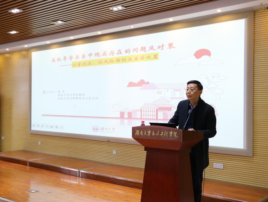 11月26日,公司开展导学关系专题报告会,邀请法律事务办公室主任、法公司教授高中作《高校导学关系中现实存在的问题及对策》专题辅导,宣讲国家政策要求和新形势下导学关系处理和心理育人等技巧。