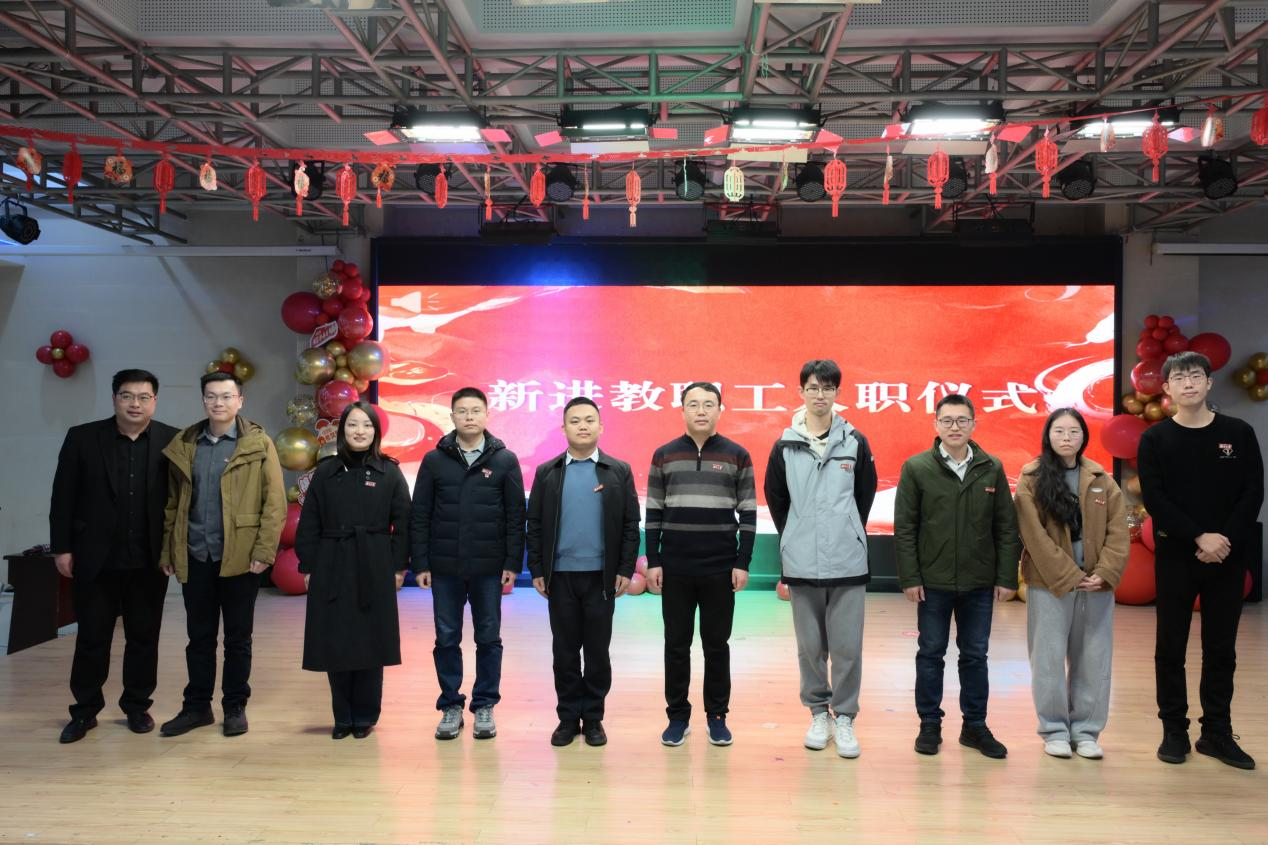 在新进教职工入职仪式上,刘文为新进教职工代表佩戴了校徽,并代表公司对新进教职工表示了热烈欢迎。