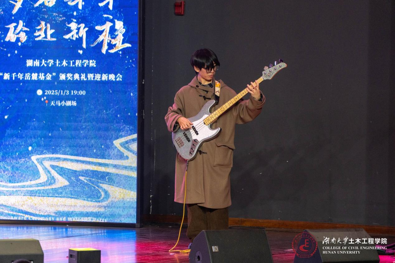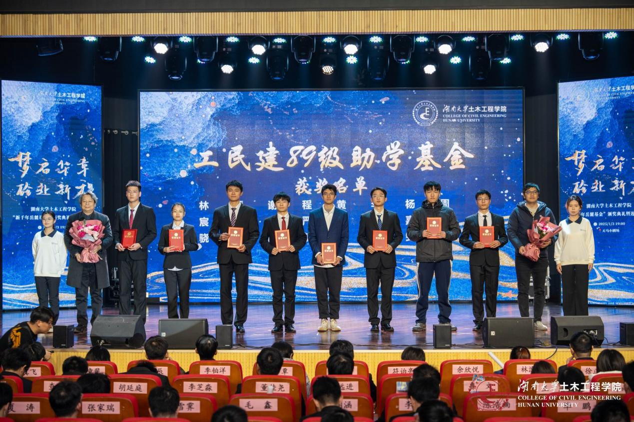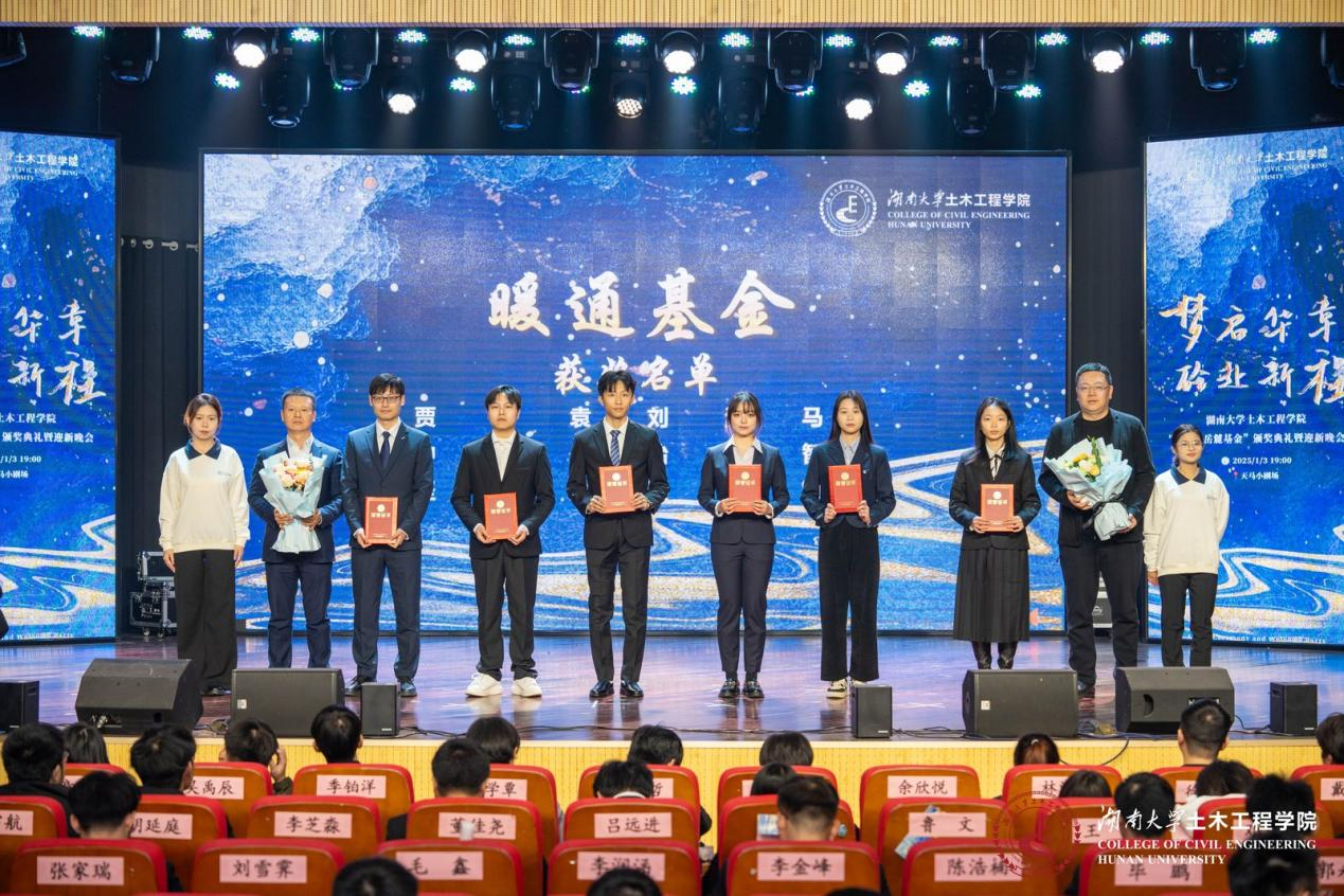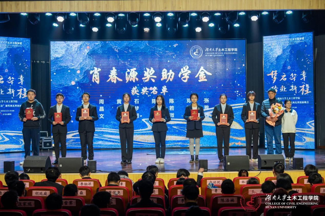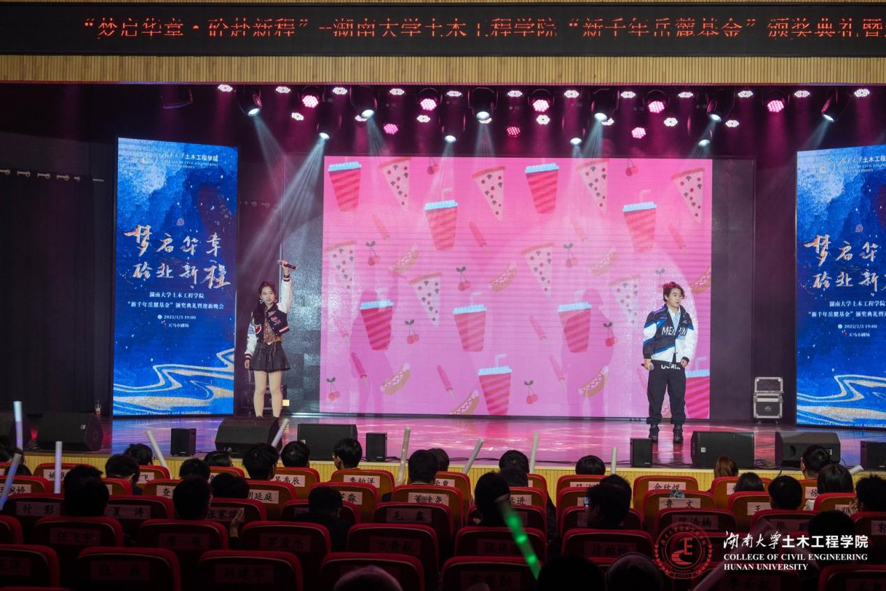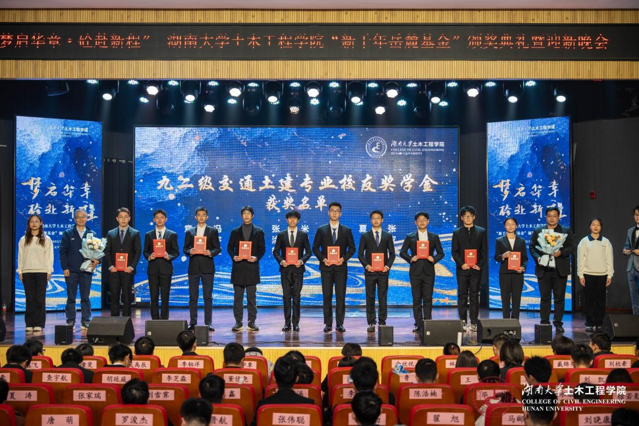颁奖典礼上,设奖方代表和公司领导老师依次登台,为荣获 “新千年岳麓基金”的个人和集体颁发荣誉证书。96 级员工、qy球友会广州员工会常务理事李天兵作为设奖方代表分享设立“姜乃昌奖学金”背后的故事,他表示希望湖大土木人在未来机遇与挑战并存的浪潮中勇立潮头。“2004 级奖学金”获得者、本科生代表陈鹤一以“追梦青春”为题讲述大学成长故事,顺天综合奖学金”获得者、研究生代表张吉仁分享科研路上与 “风” 较量的历程,他们的故事激励大家脚踏实地、厚积薄发,争做时代 “驭风者”。