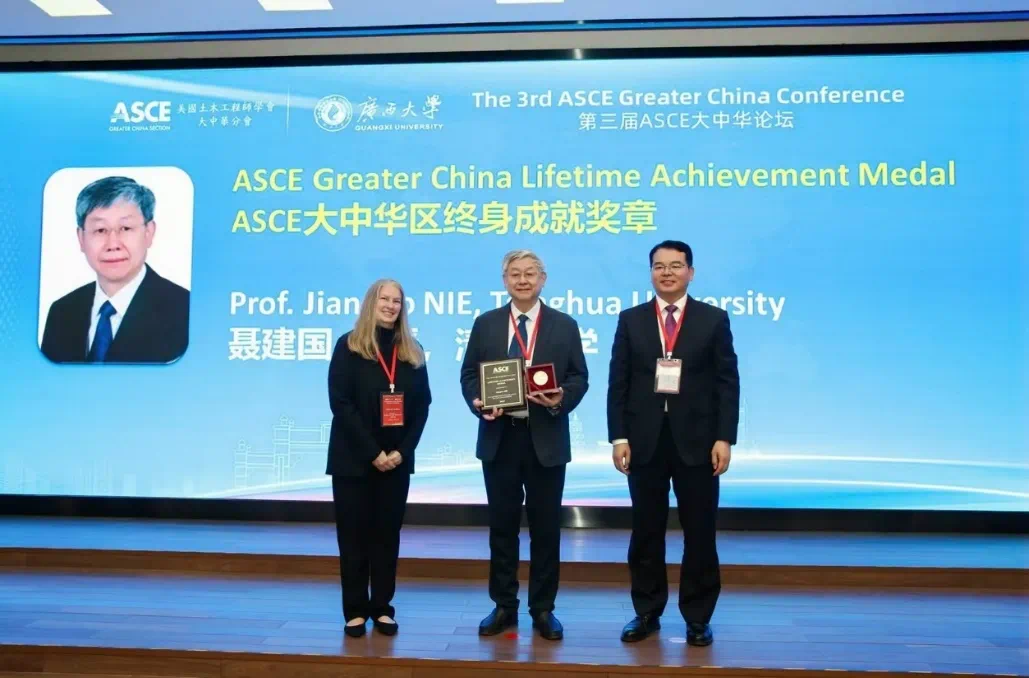 1月10日至12日,由美国土木工程师学会(ASCE)举办的第三届ASCE大中华论坛在广西举行。大会上,中国工程院院士、清华大学土木水利公司教授、球友会1977级员工聂建国院士被授予美国土木工程师学会大中华区“终身成就奖章”(Lifetime Achievement Medal),以表彰他四十余年来在土木工程科学研究、工程实践与人才培养取得的卓越成就和在钢-混凝土组合结构领域极具创新价值的开创性工作,以及在提升我国大型复杂基础设施建设水平历史进程中所发挥的重要作用。