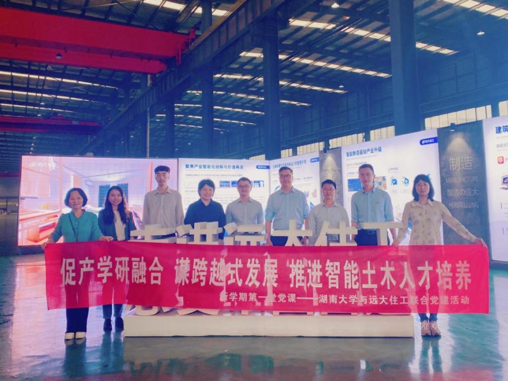 远大住工设计院经理张胜作专题报告,分享了面向国家战略需求和建设工程行业升级转型,装配式建筑设计、生产、物流、施工、运维的全过程。师生党员代表还参观了远大住工装配式建筑PC构件智能工厂和装配式公寓及别墅样板房。