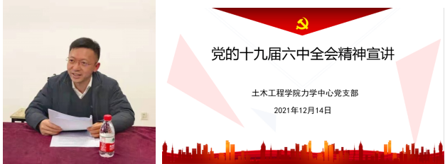 12月14日,应用力学研究中心党支部的老师们在支部会议室集体学习了党的十九届六中全会精神。经理邓露同志系统宣讲了全会精神,学习活动由支部书记周芬同志主持。
