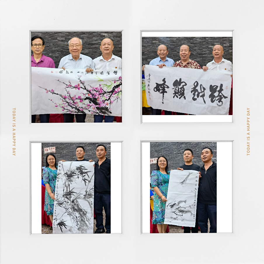 活动接近尾声,令人惊喜的是书画院的书画家把近期创作的四幅书画作品分别送给沈蒲生、施楚贤两位教授和土木离退休两个支部,现场气氛热烈,掌声阵阵。最后,三个支部的党员合影留念,为今天的党日活动画上圆满的句号。