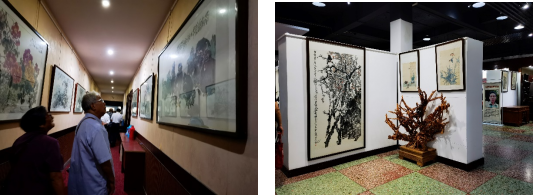 接着,湖南省真卿书画公司党支部书记张振兴介绍书画院情况,并带领党员同志观摩“颂党恩、迎国庆”书画展。