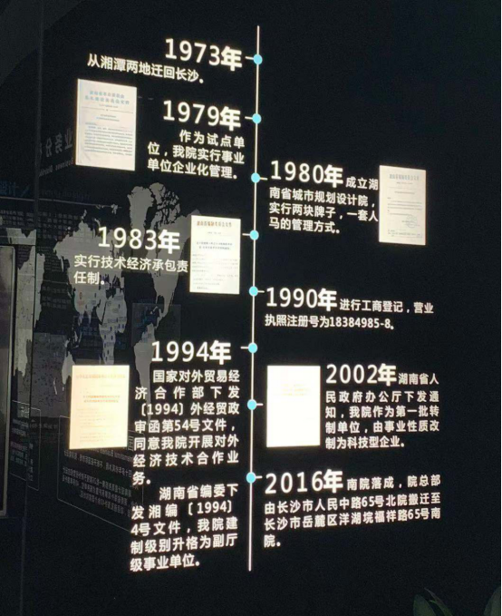 陈圆学姐、徐舜开学长首先带同学们来到了位于省院办公楼一楼的展览厅,给同学们介绍了湖南省院的历史沿革、目前的主要业务分布、各板块业务及承接的重大项目简介以及企业所获得的荣誉。