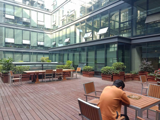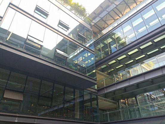 在结束展览馆参观后,陈圆学姐带领同学们参观了省院内部的工作环境。陈圆学姐向同学们介绍到,省院的办公楼是自己规划设计的,不仅设计理念非常先进,工作环境舒适优美,而且成本造价远低于市场价,令同学们倾叹不已。