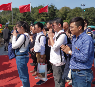 同志们来到毛泽东铜像广场瞻仰主席铜像,并向主席敬献花篮,深切缅怀伟人的丰功伟绩。