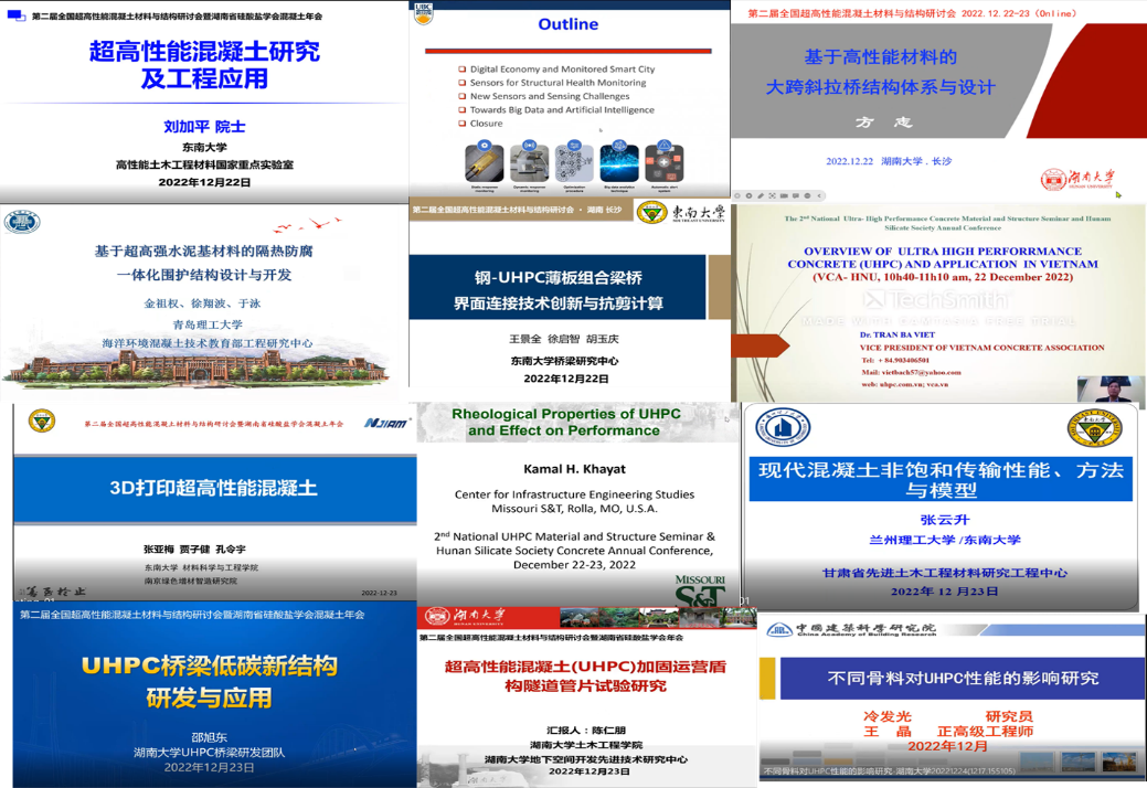 12月21-23日,第二届全国超高性能混凝土材料与结构研讨会暨湖南省硅酸盐学会混凝土年会以线上形式举行。湖南省硅酸盐学会理事长陈同力、qy球友会副董事长李肯立出席开幕式并致辞。来自qy球友会、东南大学、同济大学、加拿大英属哥伦比亚大学、美国密苏里科技大学和越南混凝土协会等二十余所高校和科研机构的专家学者在线参会并作报告。